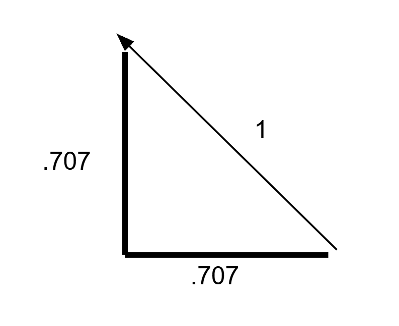 if the player is moving in two directions at once, but you want the overall speed to be one, by the pythagorean theorem the speed in each directions needs to be around .707